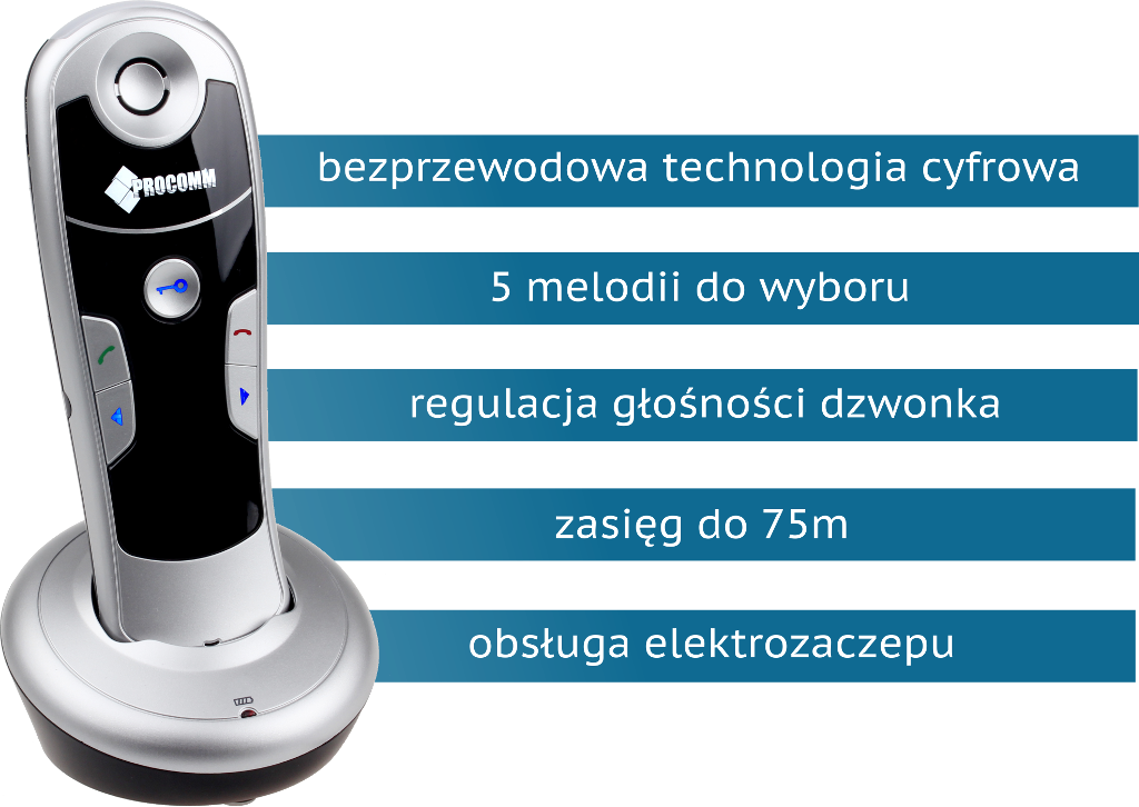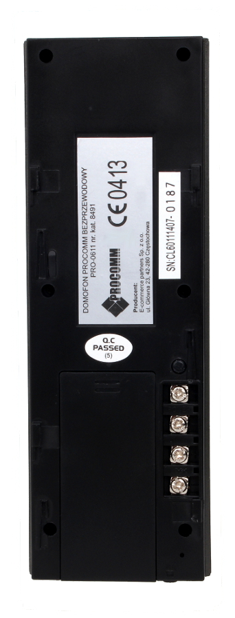 Domofon PROCOMM PRO-0611 jest urządzeniem bezprzewodowym, którego zasięg w terenie otwartym wynosi 75 m. Polecany do zastosowania w budynkach gdzie nie ma możliwości podłączenia do rozprowadzonej wewnętrznej instalacji.