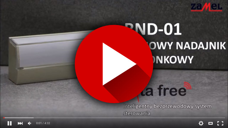 RND-01 to bezprzewodowy jednoprzyciskowy nadajnik działający w standardzie exta free (f=868 MHz). Przystosowany jest do współpracy z kontrolerami EFC-01 /EFC-02 oraz odbiornikami systemu. Ze względu na podwyższony stopień ochrony obudowy (IP44) może być montowany na zewnątrz w miejscach nie narażonych na bezpośrednie działanie wody. Przy współpracy z kontrolerami nadajnik RND-01 znajduje zastosowanie głównie jako przycisk dzwonkowy. Dzięki aplikacji i zarejestrowaniu nadajnika w kontrolerze możliwe jest wywołanie w urządzeniu mobilnym określonego dźwięku po naciśnięciu przycisku w RND-01. Realizujemy w ten sposób mobilny dzwonek drzwiowy. Nadajnik RND-01 posiada także wbudowany czujnik temperatury i można go wykorzystać do pomiaru wartości temperatury w miejscu zainstalowania. Nadajnik zasilany jest bateryjnie (1 x CR1632).