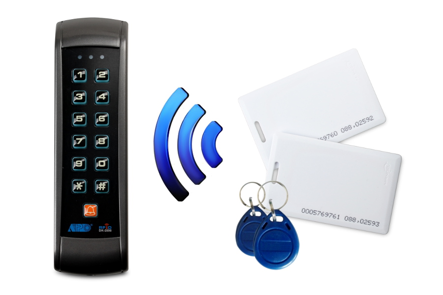 - czytnik kart i breloków zbliżeniowych (2 karty w zestawie) pracujący na częstotliwości 125 kHz