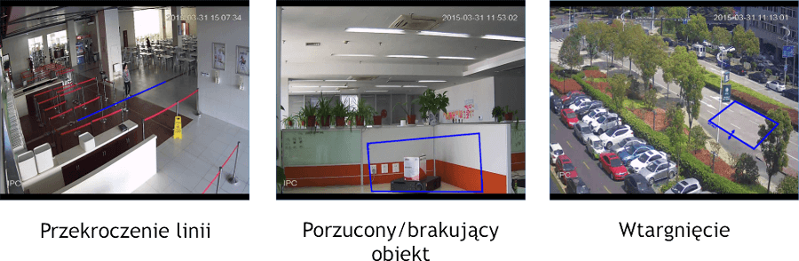 - Wywołanie alarmu po wejście w wyznaczony obszar / porzucenie rzeczy