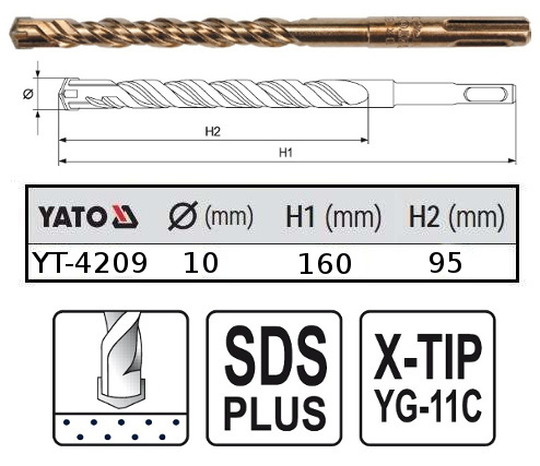 - WIERTŁO DO BETONU YATO YT-4209 10/160MM SDS (nr kat. 1317)