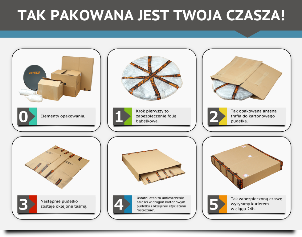 Specjalne opakowanie do wysyłki anten satelitarnych. Dotrze do Ciebie bezpiecznie.