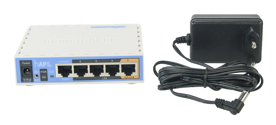 Urządzenie zostało wyposażone w 5 portów Ethernet 10/100Mbps. Dodatkowo port ETH 5 oferuje funkcję PoE-Out – może zasilać inne urządzenia o takim samym napięcu zasilania i maksymalnie prądem o natężeniu do 500mA. HAP ac lite może być zasilany z gniazda `jack` (zasilacz w komplecie) lub z poprzez pasywne PoE. Urządzenie jest zarządzane systemem RouterOS level 4.