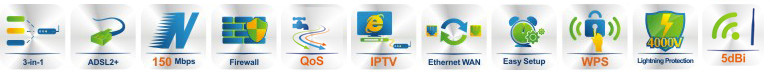 • Główne cechy: DHCP, DHCP Relay, NAT, Statyczny routing, VPN (PPTP, L2TP, IPSec) Pass-Through, Mapowanie PVC/Portów Ethernet, DNS Relay, DDNS IGMP Multicast, IGMP Snooping V1/V2, Virtual Server, DMZ, ACL (Access Control List), UPnP, IPv6