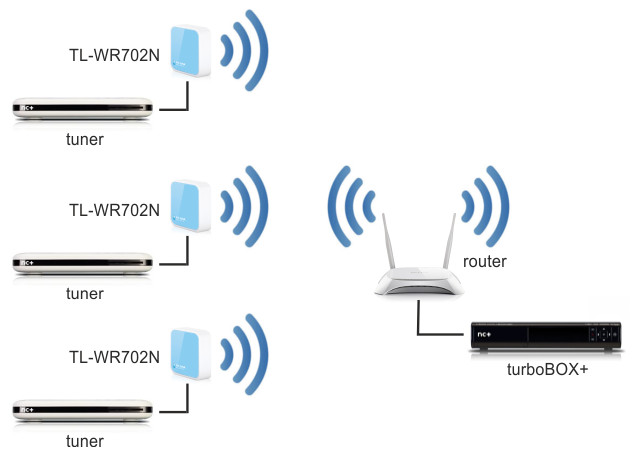 Podłączenie do większej ilości tunerów klienckich do turboBOX’a:
