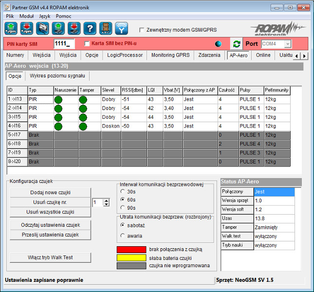 - obsługa do 8 (NeoGSM) lub urządzeń bezprzewodowych Aero – praca systemowa,