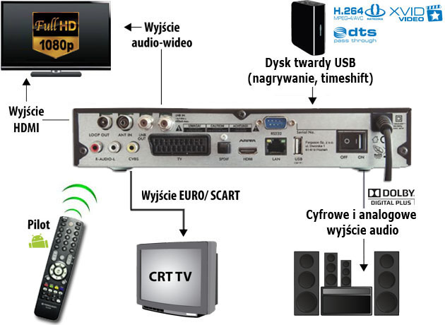 - Odbiór kanałów wysokiej rozdzielczości (High Definition)
